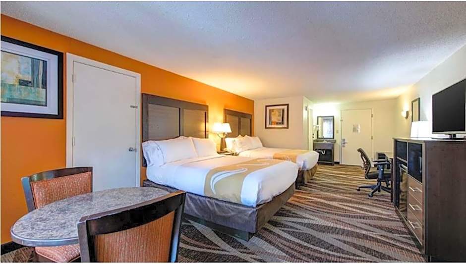 This nonsmoking room features a refrigerator, TV and work desk.